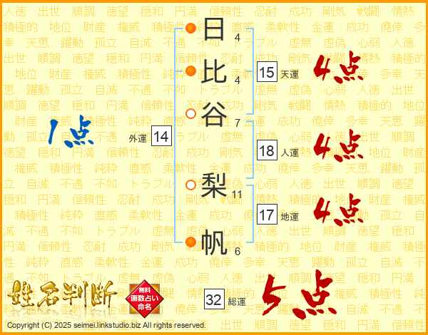 日(4画)比(4画)谷(7画) 梨(11画)帆(6画)