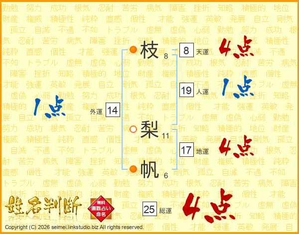 枝梨帆さんの総運は25画の4点!