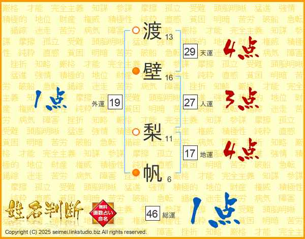 渡壁梨帆さんの地運は17画の4点!