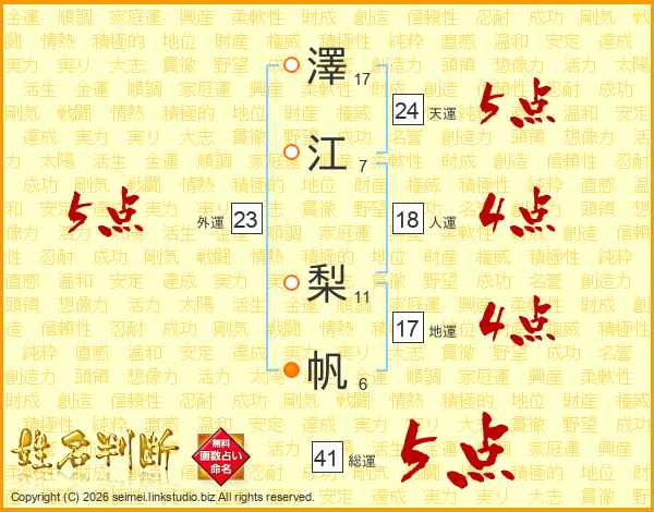 澤江梨帆さんの総運は41画の5点!