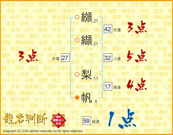 纐纈梨帆さんの総運は59画の1点!