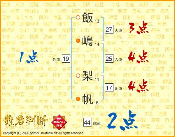 飯嶋梨帆さんの総運は44画の2点!