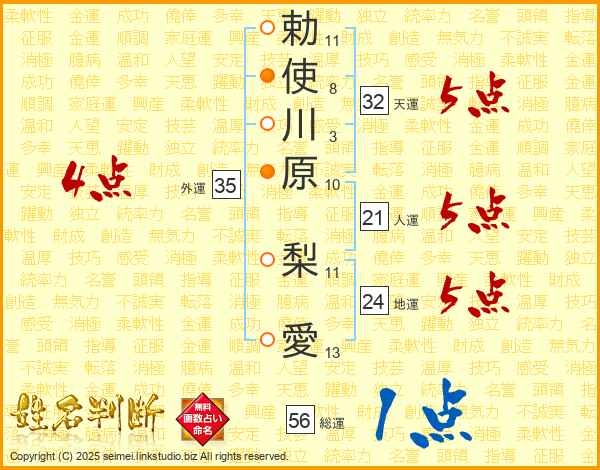 勅使川原梨愛さんの外運は35画の4点!