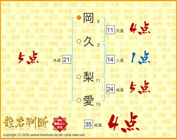 岡久梨愛さんの外運は21画の5点!
