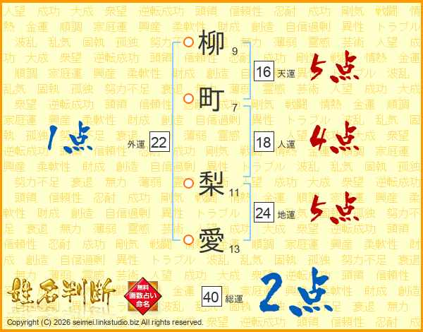 柳町梨愛さんの総運は40画の2点!