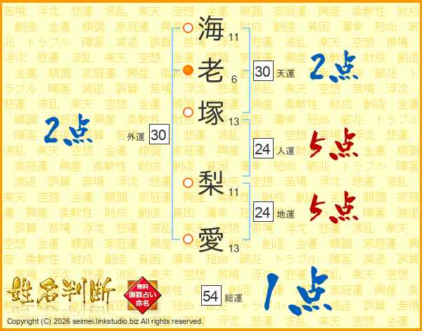 海老塚梨愛さんの総運は54画の1点!
