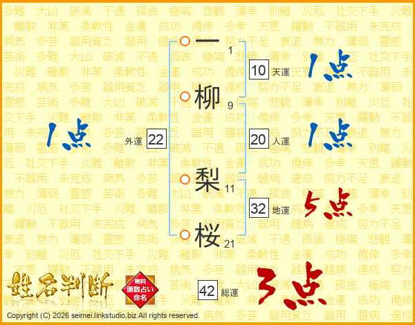 一(1画)柳(9画) 梨(11画)桜(21画)