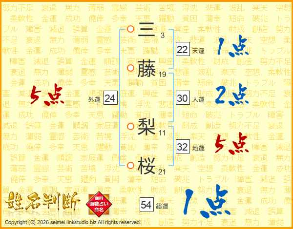 三藤梨桜さんの総運は54画の1点!