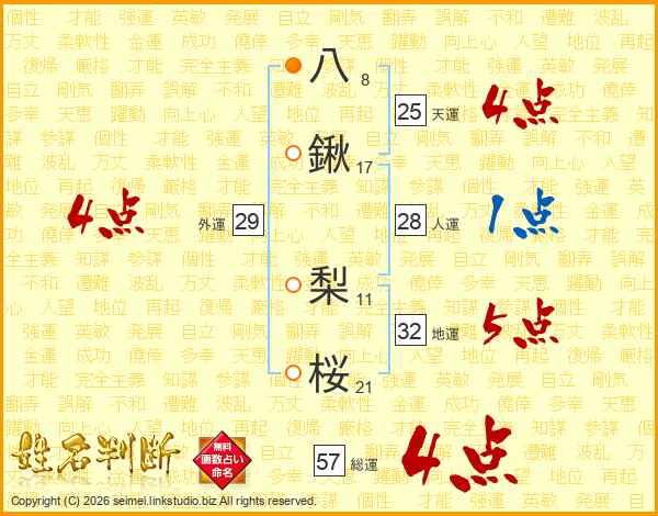 八(8画)鍬(17画) 梨(11画)桜(21画)