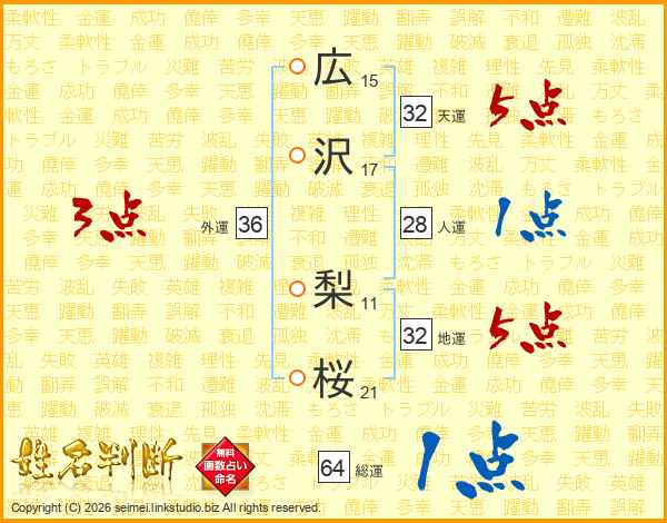 広(15画)沢(17画) 梨(11画)桜(21画)