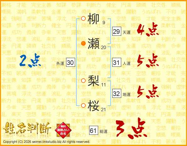 柳瀬梨桜さんの人運は31画の5点!