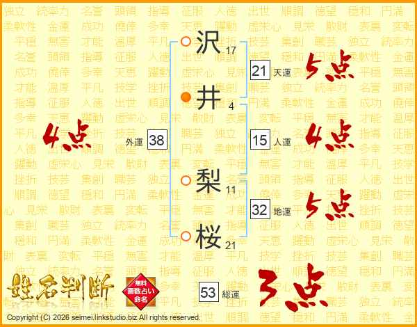 沢井梨桜さんの外運は38画の4点!