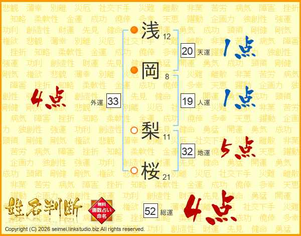 浅岡梨桜さんの総運は52画の4点!