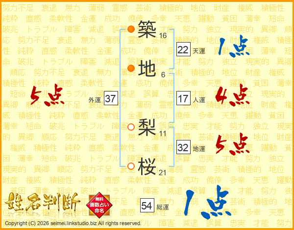 築地梨桜さんの総運は54画の1点!