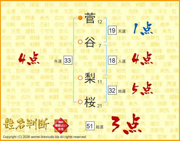 菅谷梨桜さんの外運は33画の4点!