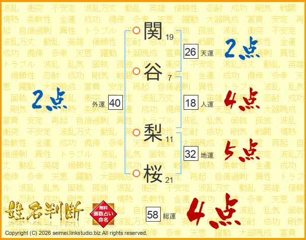 関谷梨桜さんの総運は58画の4点!
