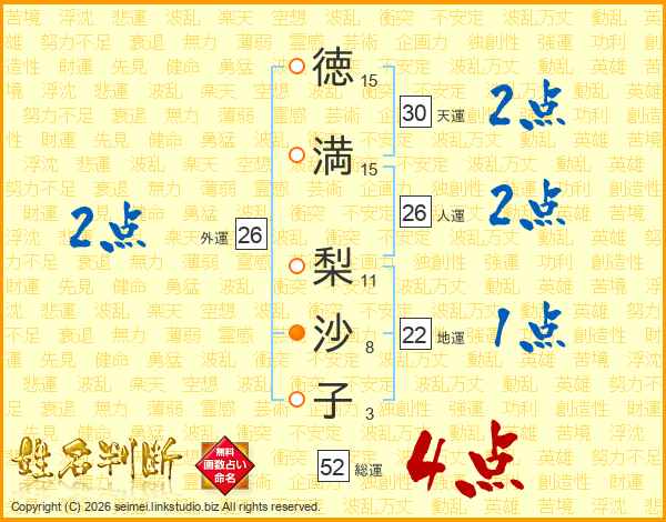 徳満梨沙子さんの総運は52画の4点!