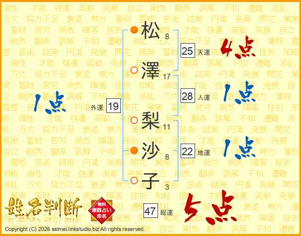 松澤梨沙子さんの総運は47画の5点!