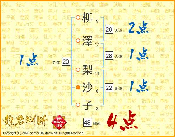 柳澤梨沙子さんの総運は48画の4点!