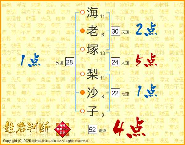 海老塚梨沙子さんの総運は52画の4点!