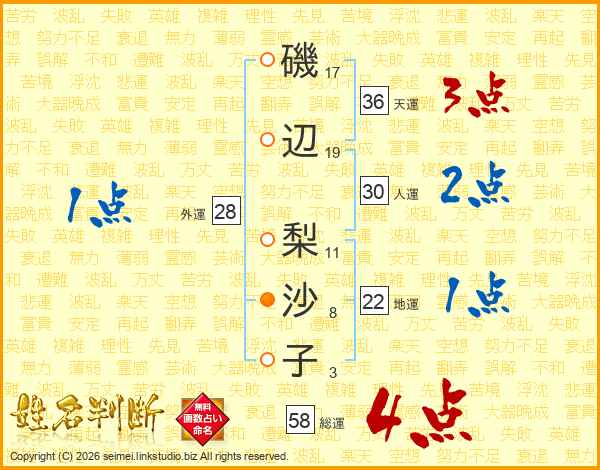 磯辺梨沙子さんの総運は58画の4点!