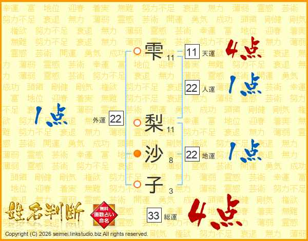 雫梨沙子さんの総運は33画の4点!