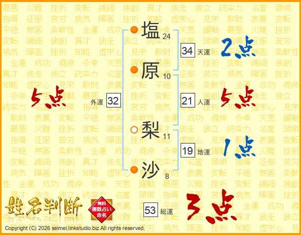 塩原梨沙さんの総運は53画の3点!