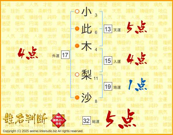 小(3画)此(6画)木(4画) 梨(11画)沙(8画)