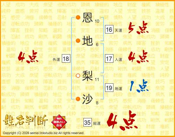 恩(10画)地(6画) 梨(11画)沙(8画)