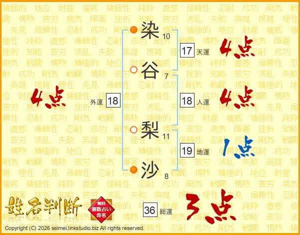 染谷梨沙さんの外運は18画の4点!