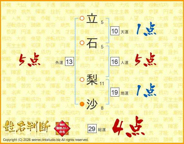 立石梨沙さんの総運は29画の4点!