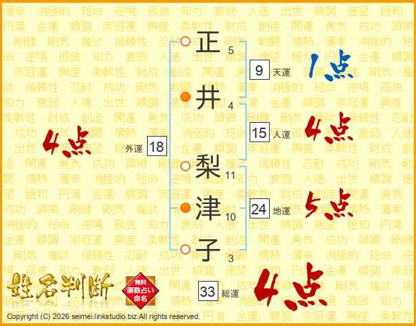 正井梨津子さんの総運は33画の4点!