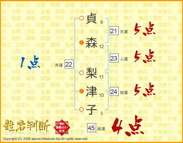 貞森梨津子さんの総運は45画の4点!