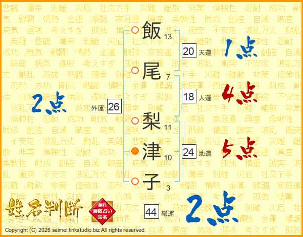 飯尾梨津子さんの総運は44画の2点!