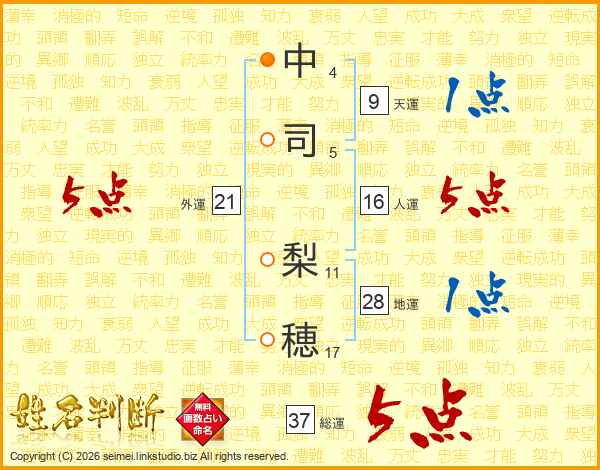 中司梨穂さんの総運は37画の5点!