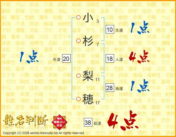 小杉梨穂さんの総運は38画の4点!