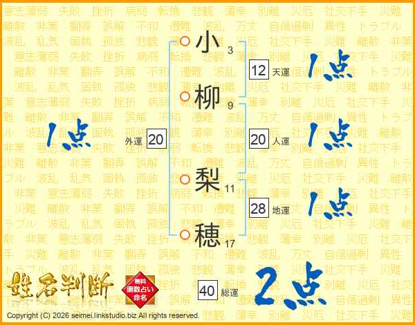 小(3画)柳(9画) 梨(11画)穂(17画)