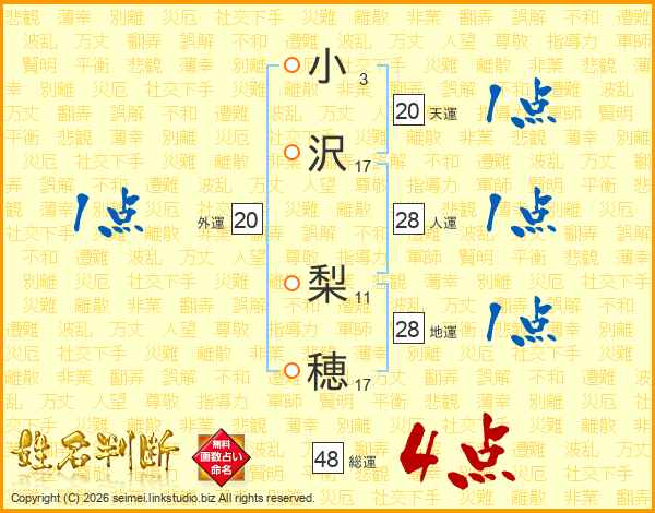 小(3画)沢(17画) 梨(11画)穂(17画)