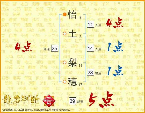 怡土梨穂さんの総運は39画の5点!