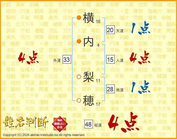 横内梨穂さんの総運は48画の4点!