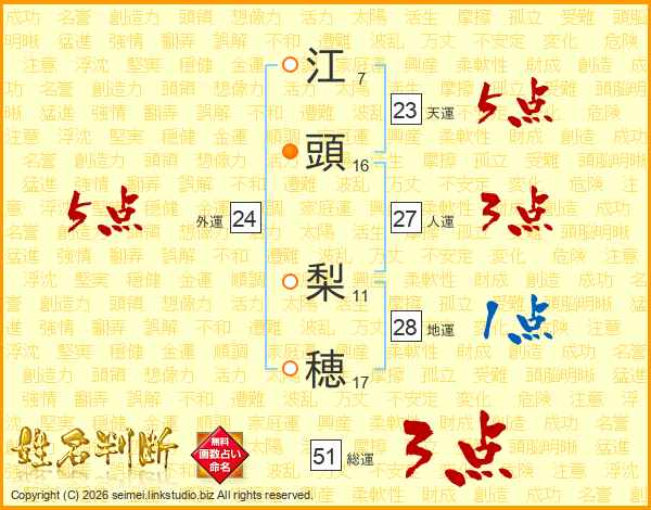 江(7画)頭(16画) 梨(11画)穂(17画)