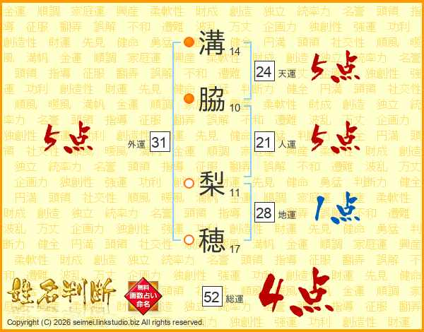 溝脇梨穂さんの総運は52画の4点!