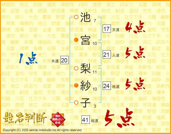 池宮梨紗子さんの天運は17画の4点!