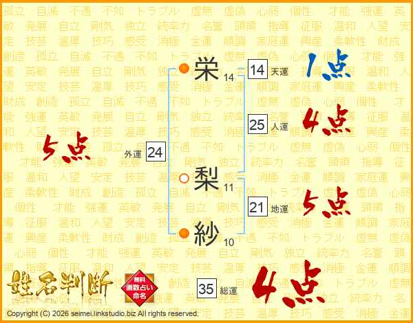 栄梨紗さんの総運は35画の4点!