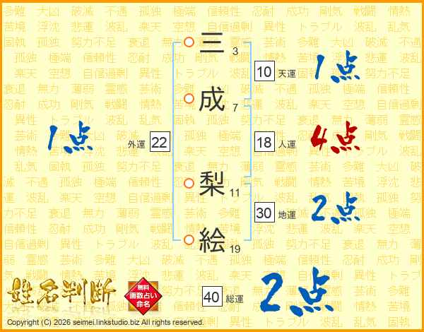 三成梨絵さんの総運は40画の2点!