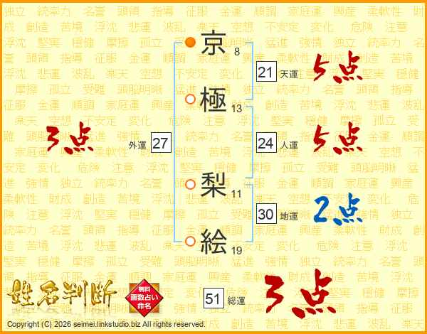 京極梨絵さんの天運は21画の5点!
