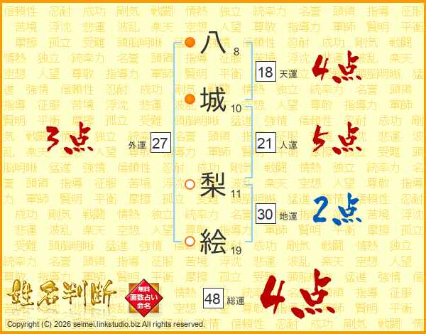 八城梨絵さんの総運は48画の4点!