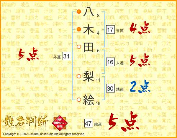 八(8画)木(4画)田(5画) 梨(11画)絵(19画)