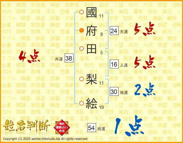 國(11画)府(8画)田(5画) 梨(11画)絵(19画)