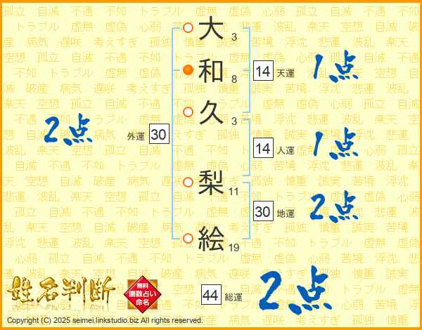 大(3画)和(8画)久(3画) 梨(11画)絵(19画)